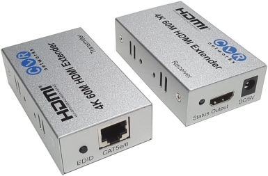 CLR-HDMI-E603 extends high quality, 4Kx2K@30Hz HDMI video from sources like NVR, DVR, DVD Player, Blu-ray Player Set-top box, console systems or other video equipments, with Cat6 UTP cable up to 60meters. This way it overcomes HDMI cable signal transmission distance limit . The video is sent as uncompressed so that it provides lossless transmission.