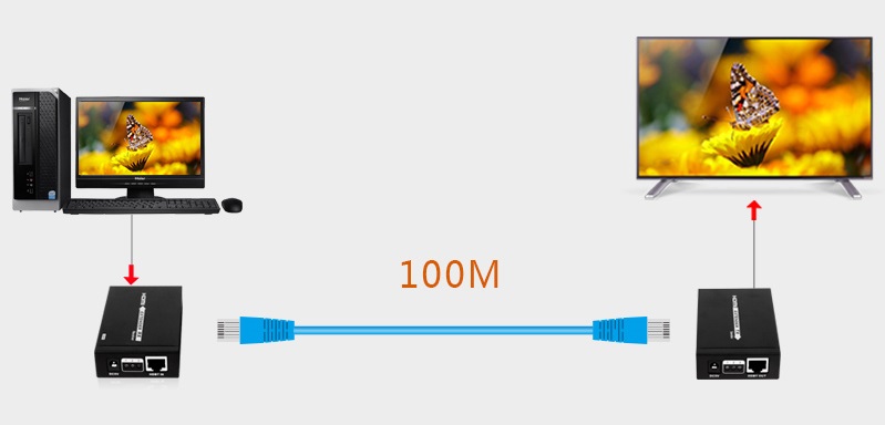 CLR-HDMI-L11 as a set, is a perfect solution to transmit high resolution, 4K 2K HDMI video from HDMI sources like 4K IP cameras, DVD Players, Blu-ray Players, Set-top boxes, console systems or other video equipments, over Cat6 and Cat7 cable infrastructure. It can achieve 70m of transmission distance.